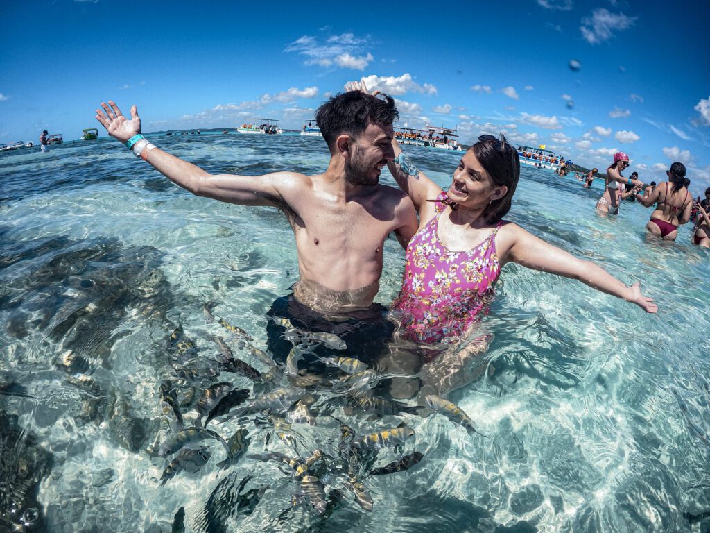 El agua es muy calma y transparente, lo que hace que la experiencia sea apta para todo tipo de viajeros, incluso quienes no tienen experiencia nadando en el mar.