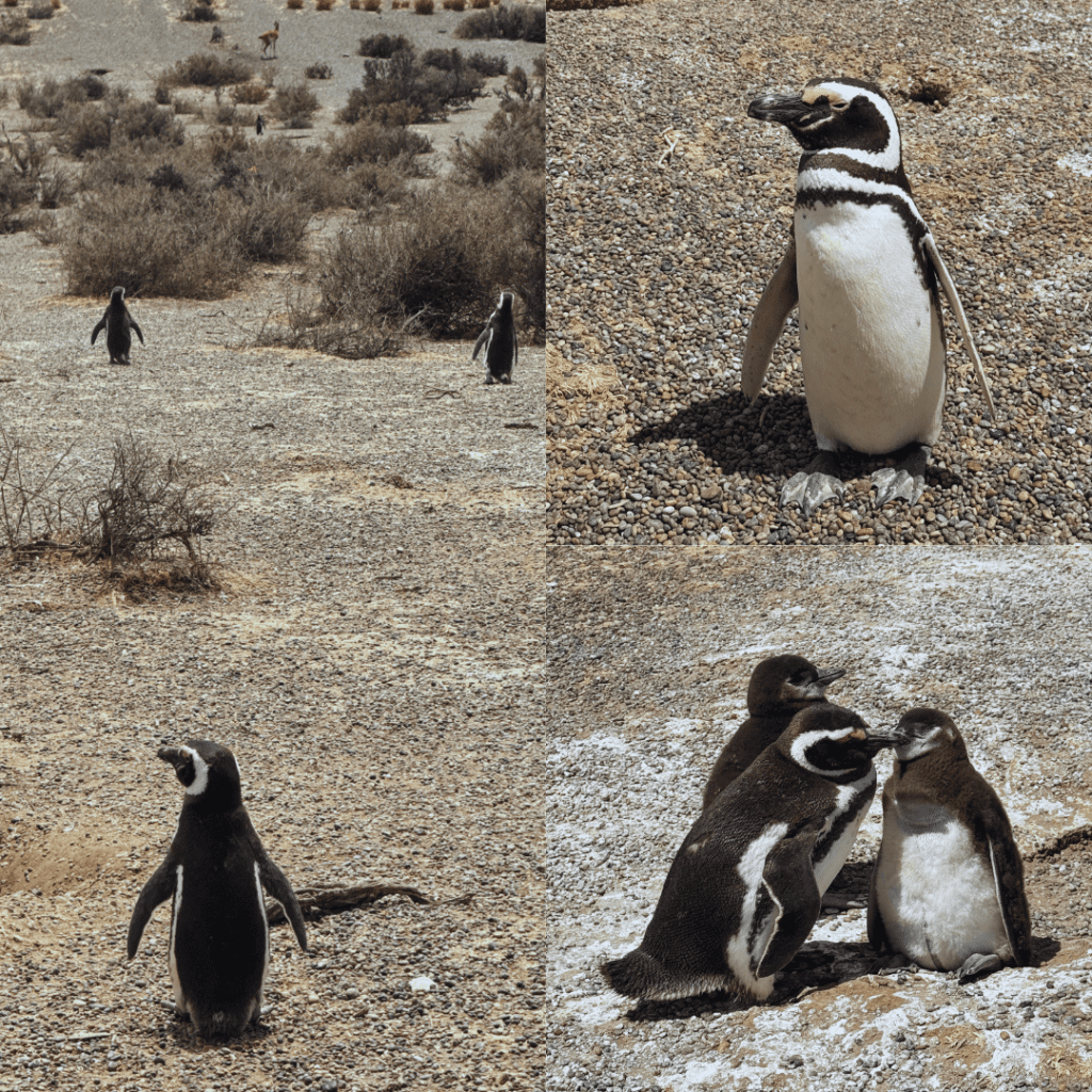 El paisaje es árido, ventoso y abierto. Cuando empezás a caminar por los senderos, te vas encontrando poco a poco con los pingüinos de magallanes MUY cerca.